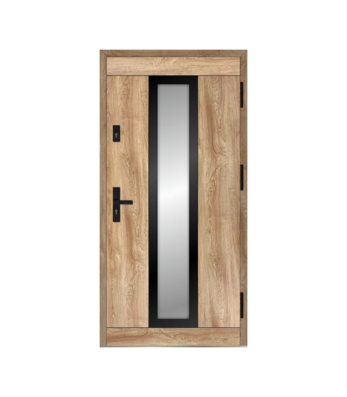 Ostatnia tafla pakietu szybowego jest wykonana ze szkła, które ma lakierowaną czarną obwolutę. Dodatkowo przeszklenie może mieć różne opcje np. lustro weneckie, refleks w kolorze czarnym, grafitowym lub brązowym, itd. Powierzchnia szyby jest idealnie zlicowana z wypełnieniem skrzydła.